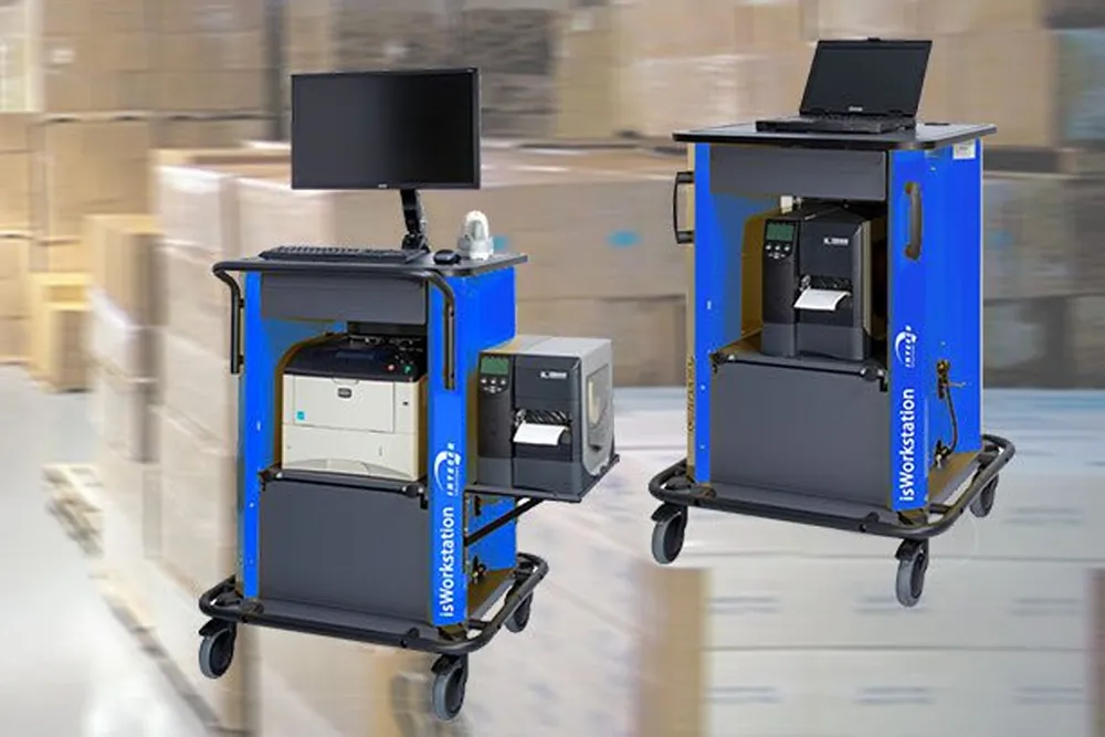 Die isWorkstation wird ausgestattet mit einem PC, einem Barcodeetikettendrucker und einem Scanner. Aufgrund des mobilen Arbeitsplatzes kann der Lagermitarbeiter sich frei mit dem Arbeitsplatz im Lager bewegen. Der Mitarbeiter kann jederzeit Informationen über die gewohnte ERP-Desktopanwendung abrufen und mit dem Scanner Artikelbarcodes einscannen. Für die Auszeichnung von neuen Artikeln oder Lagerplätzen können direkt an Ort und Stelle Barcode-Etiketten gedruckt werden. Alle benötigten Geräte stehen in unmittelbarer Nähe zur Verfügung – lange Laufzeiten werden eingespart. Durch die spezielle Ladetechnik werden mobile Laufzeiten von bis zu 42 Stunden am Stück erreicht.